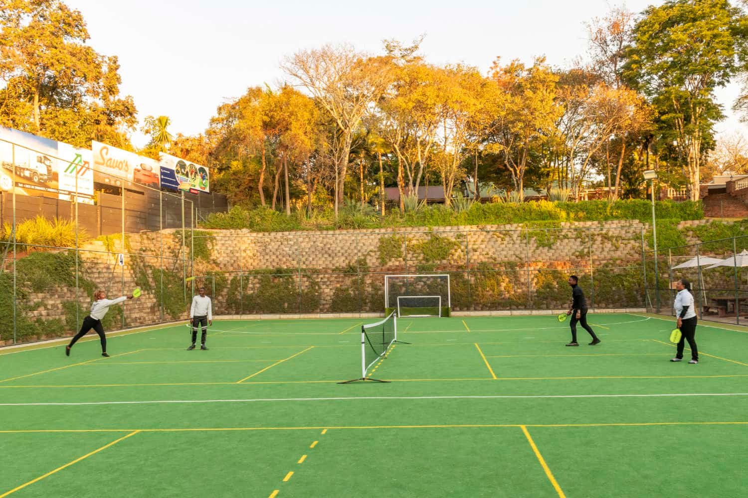 Our top-class all-weather Astro turf pitch is used for soccer, hockey and pickleball and available to book throughout the year through our online booking system.